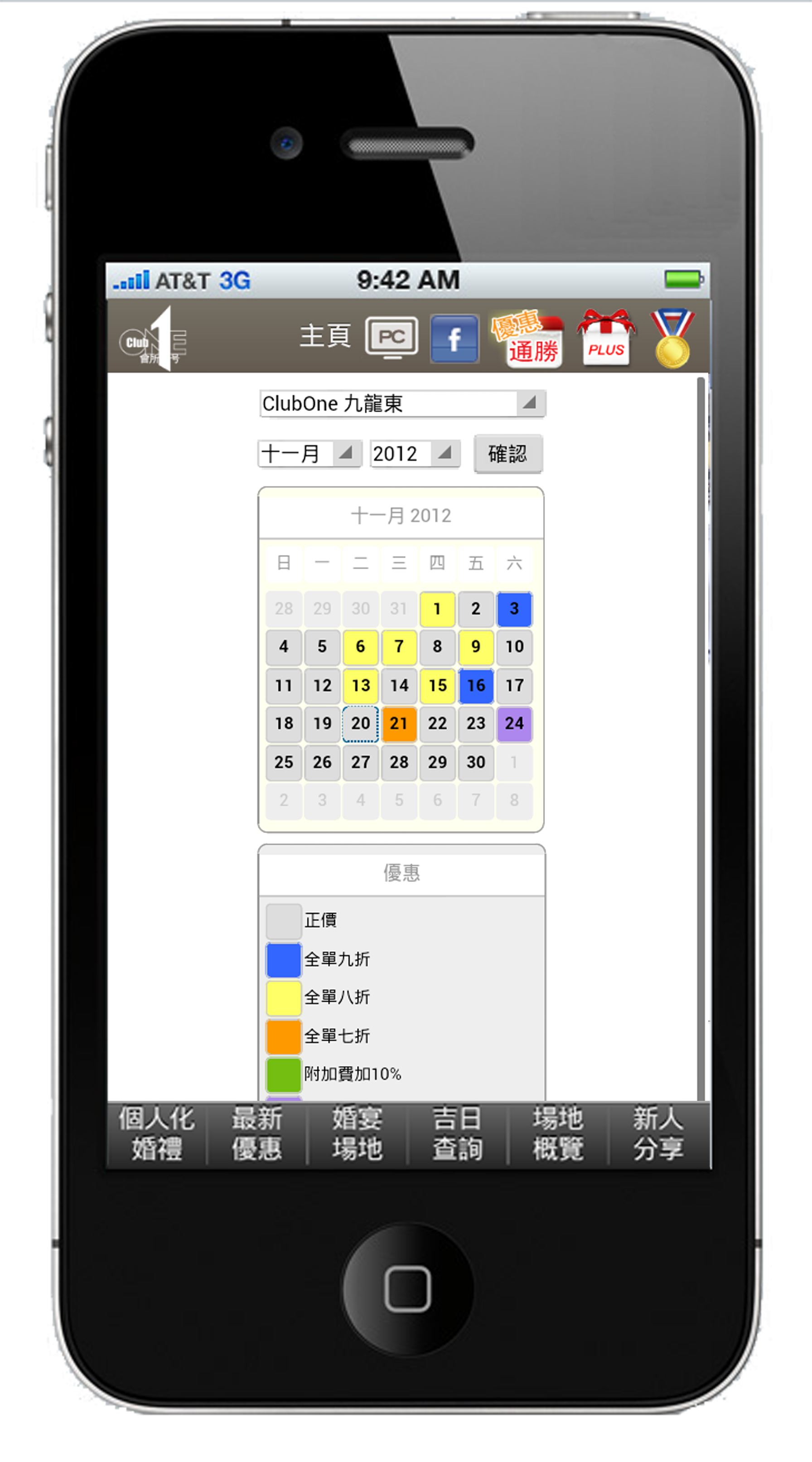 為了讓籌備婚禮的新人們更方便,更節省時間;ClubONE手機網以php配合java script編寫,比一般利用java script編寫的手機網具更高的兼容性,無論在網上的查詢ClubONE的不同場地,又或是其他不同日期的收費及折扣優惠均快捷簡便;若要要挑選你的心儀日子,你只要到手機網內的「吉日查詢」,找到你的心儀的日子一Click,即時會為你發送電郵通知有關之同事,作出跟進。